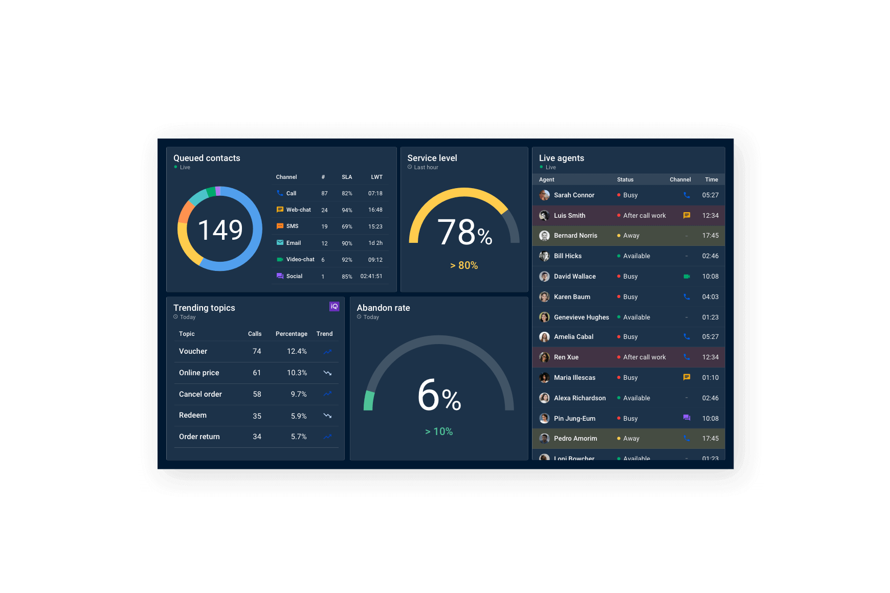 An API-based, flexible, live dashboard platform that enables contact center leaders to focus on what matters most.